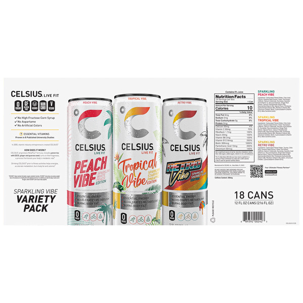 Celsius Sparkling Energy Drink, Vibe Variety Pack, 12 fl oz, 18-count